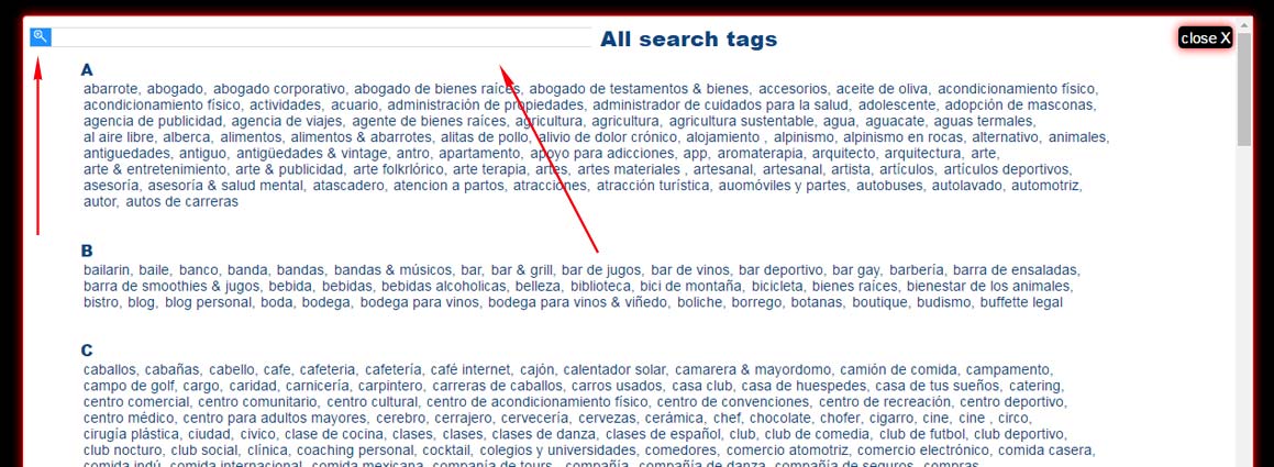O haga clic en "VER TODOS" para ver el menú "Todas las etiquetas de búsqueda".
