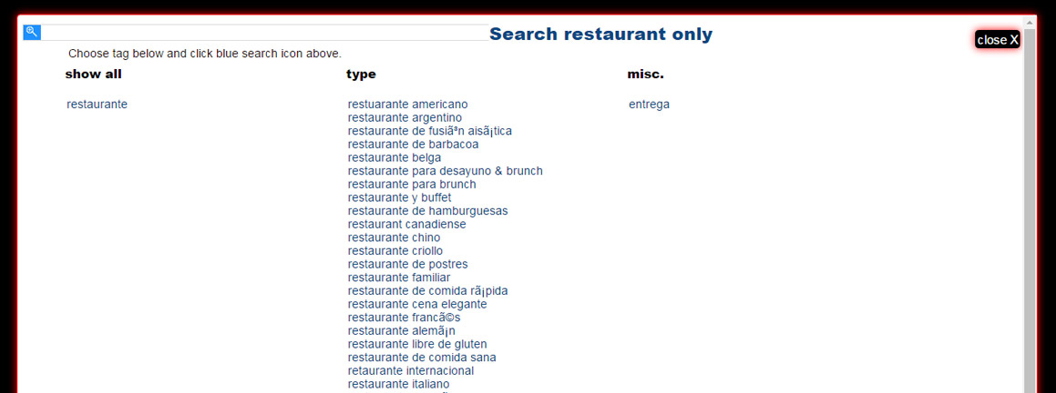 En el submenú de etiqueta "restaurante" o "bienes raíces", seleccione una etiqueta y, a continuación, haga clic en el icono Buscar / Buscar en la barra de búsqueda / búsqueda.